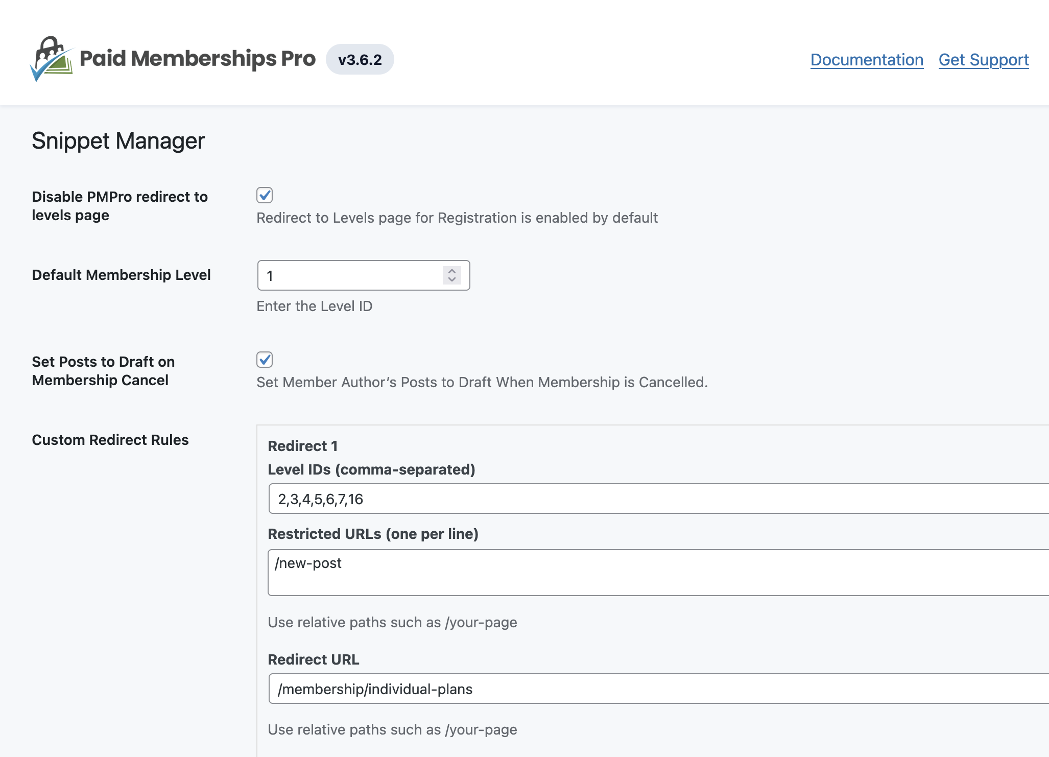 Paid Memberships Pro – Snippet Manager