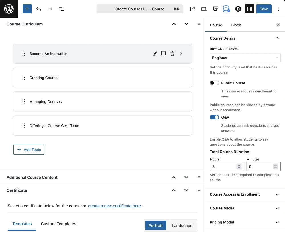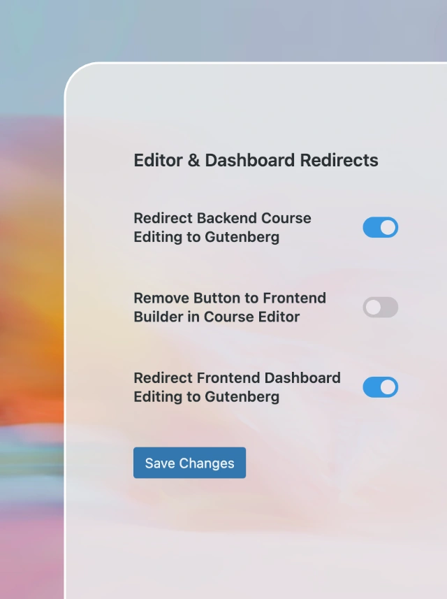 Granular settings put you back in control of when and where to use Gutenberg versus Tutor LMS’s frontend course builder.